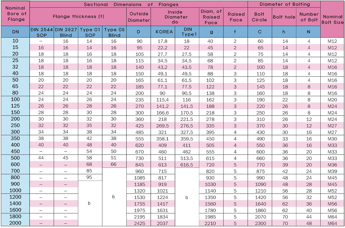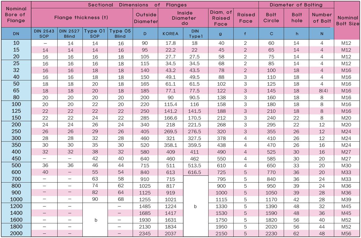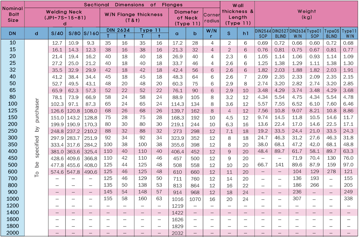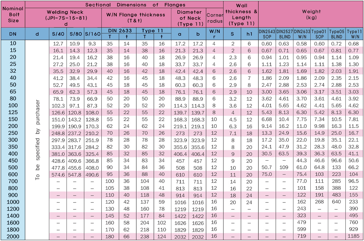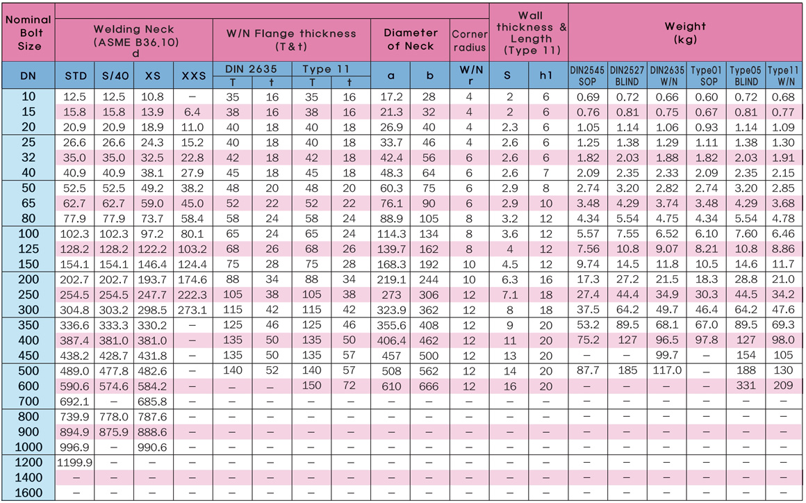 - Flange weight of DIN W/N is based on ISO Serie 1, and weight of Type 11 is based on KS PIPE (a)